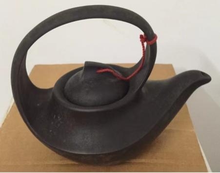 汪寅仙大师善于把现代的造型元素融入到紫砂壶艺术之中,他制作的‘神鸟出林壶’,构思简练概括,形象生动,整体感强,壶身,壶把整个为一球体,壶嘴似鸟头,道法自然,在壶身和壶把之间通过上下不等的虚空间,使神鸟展翅,舒展自然得体,经艺术图案变化产生了动感,线条挺而有劲,提握舒适,整个壶体在艺术上达到了取其势,提其形,表其神的效果,是一件富有时代感的精神雕塑性艺术珍品。