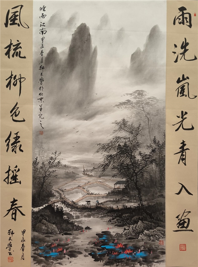 “韩先生的作品有‘魂’,楷书端庄雄浑如军人列队,行书潇洒灵动似流水奔腾,山水画更是将北方山川的雄浑与南方水乡的灵秀融为一体。” 中国书画艺术家协会秘书长张建军在接受记者采访时评价,韩文学的创作始终坚守 “笔墨当随时代”,近年来他结合社会公益活动创作的《军魂》《山河颂》等作品,既传递正能量,又展现传统艺术的当代价值 —— 其中为南皮县消防队题写的 “军魂” 二字,更是被业内评价为 “兼具军人担当与文化底蕴的经典之作”。