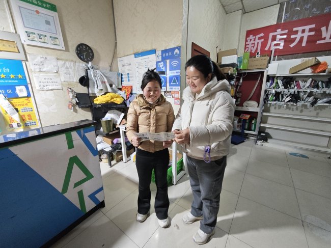 工作人员以温和、不打扰的方式向来往顾客及商铺店主发放反诈宣传资料,面对面解答群众关心的账户安全、银行卡使用、个人信息保护等问题,用通俗易懂的语言普及金融消保知识,让反诈宣传更接地气、更贴民心、更具实用性。