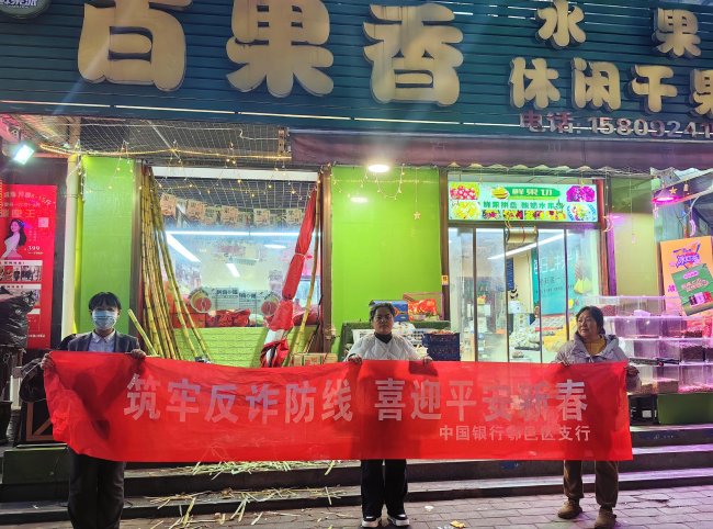 新春临近果飘香,反诈宣传不打烊。为切实守护沿街商户与市民消费财产安全,筑牢春节期间电信网络诈骗防护屏障,1月27日,中国银行西安鄠邑区支行精准对接零售门店需求,走进百果园水果店,开展“筑牢反诈防线,喜迎平安新春”主题消保宣传活动,将通俗易懂的反诈知识送到门店柜台、传递给消费群众,用金融温度守护新春平安。