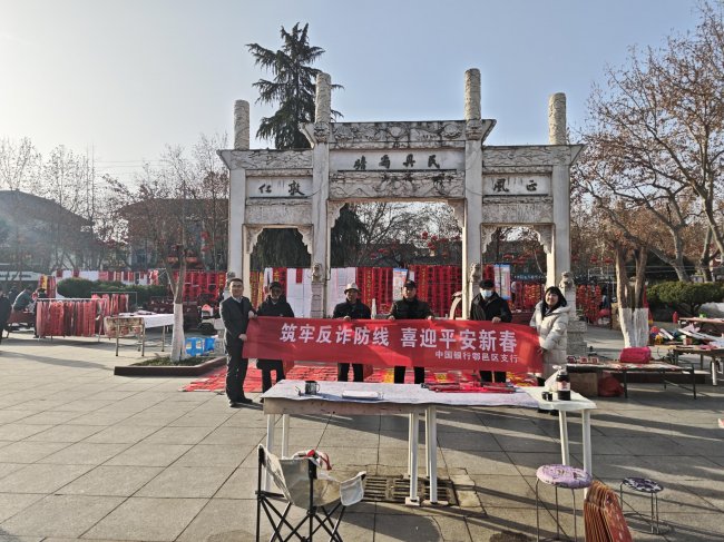 新春临近,暖意融融。为切实守护老年居民金融财产安全,提升老年人防范诈骗“免疫力”,近日,中国银行鄠邑区支行走进文庙广场,面向休闲休憩、日常活动的老年人群体,开展“筑牢反诈防线 喜迎平安新春”专项金融消保宣传活动,以贴心服务守护银发一族,用反诈知识护航平安新春。